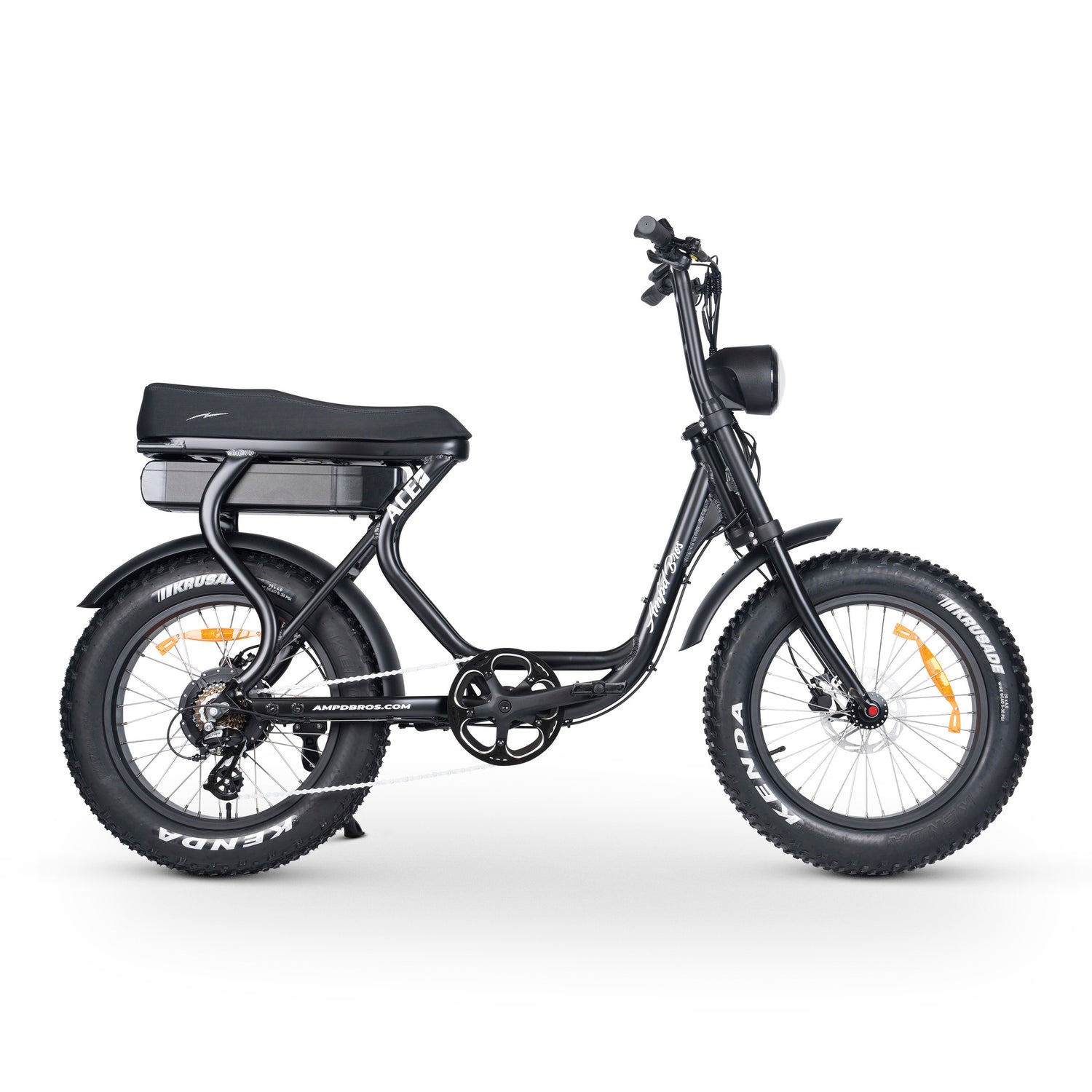 The ACE-S takes performance up a notch with our Custom Master Control unit, providing top-tier power density and advanced motor control algorithms. Seamlessly integrating light controls, improving reliability and simplifying diagnostics. The ACE is your go-to for all terrain adventure thanks to its 20x4" Fat Kenda krusade mud tyres, a High Torque Bafang Rear Hub Motor and Tektro Hydraulic Disc Brakes, guaranteeing a smooth and secure ride.