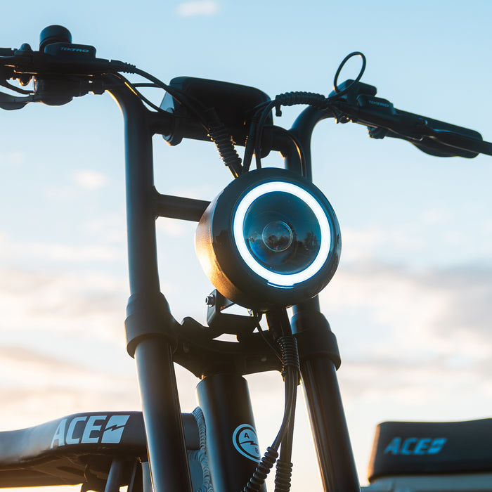 The ACE-X takes performance up a notch with our Custom Master Control unit, providing top-tier power density and advanced motor control algorithms. Seamlessly integrating light controls, improving reliability and simplifying diagnostics. The ACE is your go-to for all terrain adventure thanks to its 20x4" Fat Kenda krusade mud tyres, a High Torque Bafang Rear Hub Motor and Tektro Hydraulic Disc Brakes, guaranteeing a smooth and secure ride.