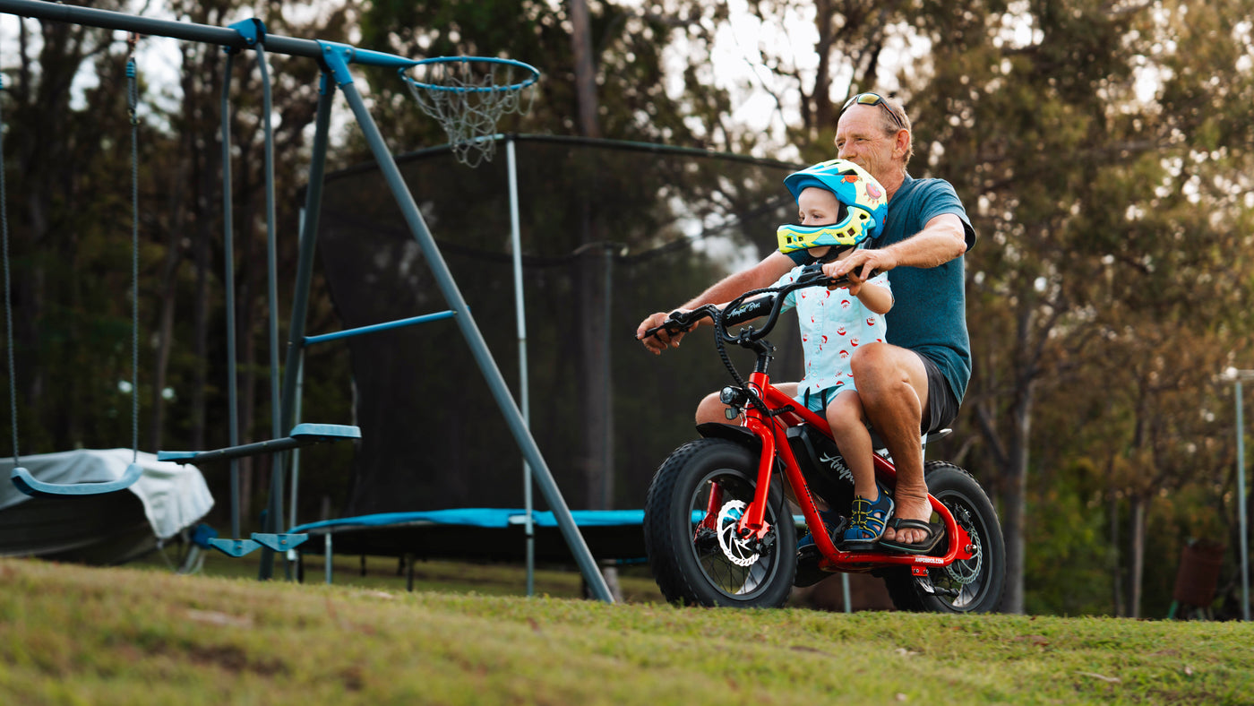Mum's and Dad's out there, we know you're looking on with envy. Well fear no more because the Lil Rippa is so capable even you can ride too thanks to the Lil Rippa's tough construction and max loading capacity of 100kg! So go on mum and dad it's your turn.