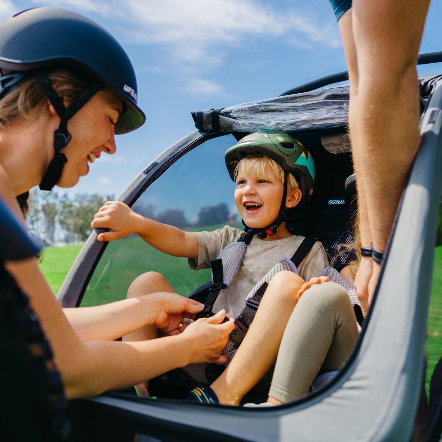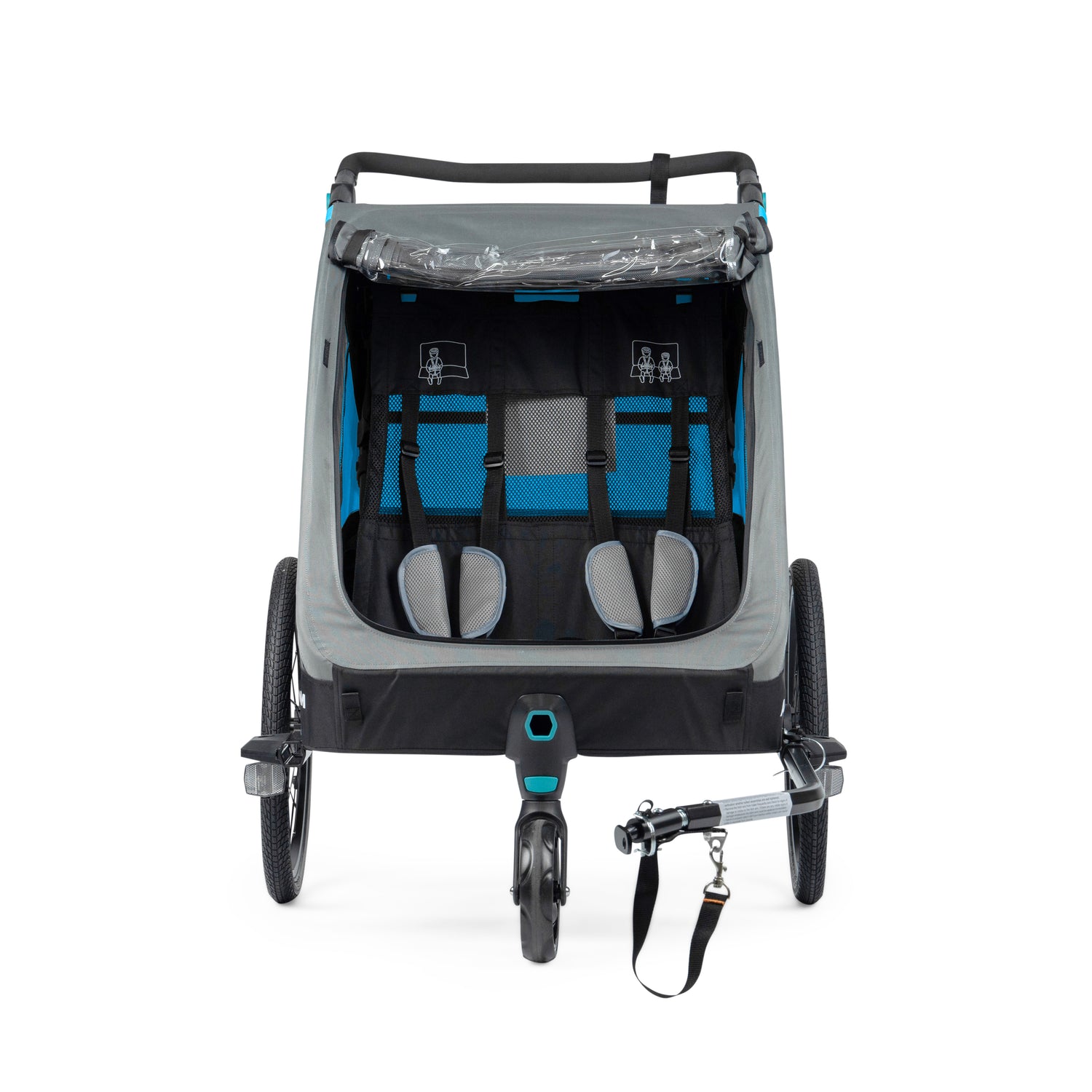 Get ready to embark on unforgettable family journeys with this top-of-the-line child trailer, available in both single and double seat versions. With its convertible design, it easily transitions from a trailer to a pram, and you can even opt for the front jogger wheel for added flexibility. Now, you can seamlessly go from a bike ride to a stroll in the park without any hassle.