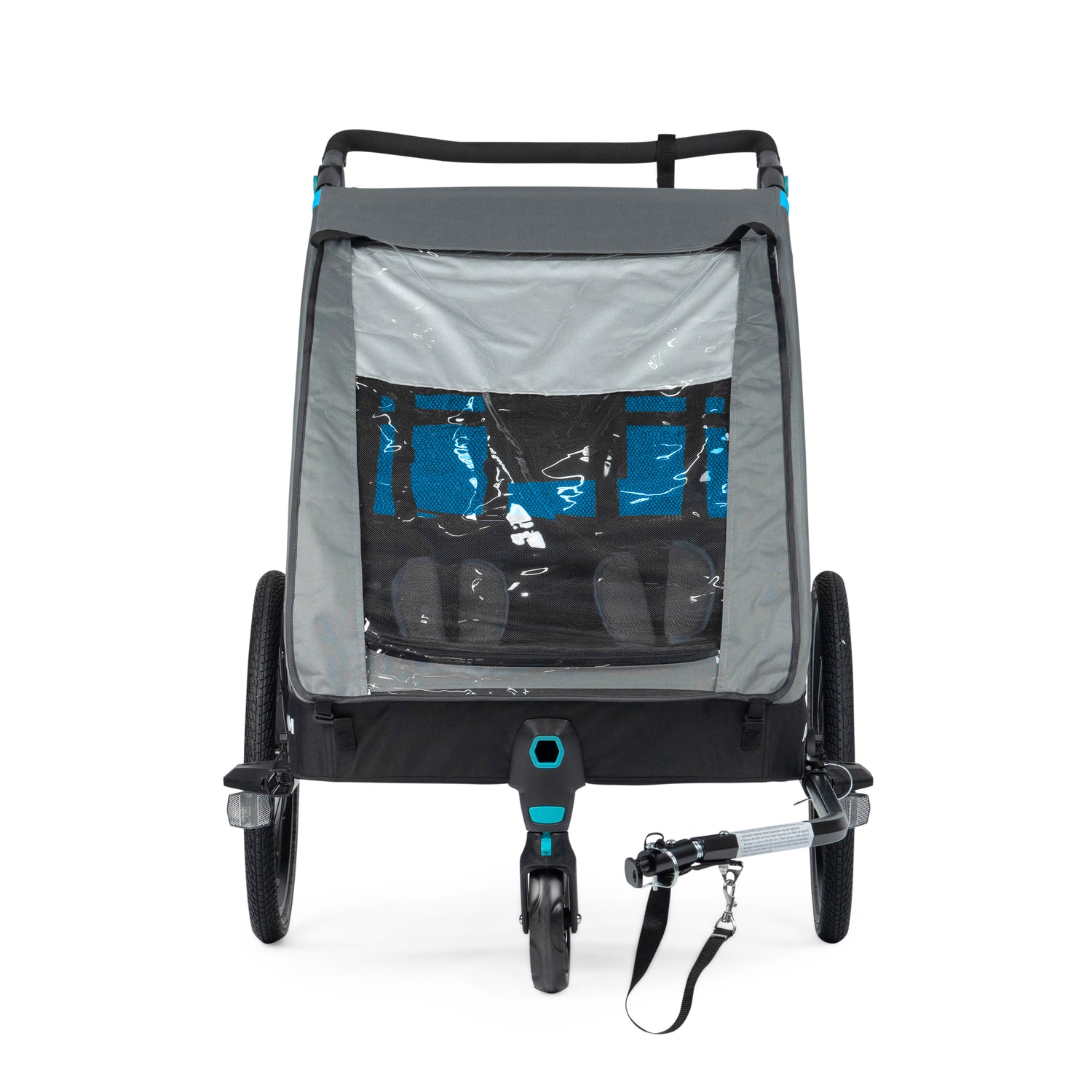 Crafted from a sturdy aluminum frame, this trailer is not only durable but also designed to carry the kids in style. The PVC rain cover keeps the little ones dry during unexpected downpours, while the side windows provide extra ventilation, ensuring a cozy and enjoyable ride for your little explorers.