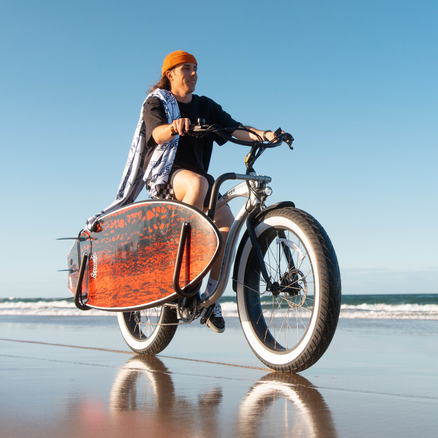 Elevate Your Surf Adventures with Ampd Brothers Longboard Bike Surf Racks! Designed for stability, they secure longboards up to 12kg. Shortboards? They're a breeze too. Our front mount connects securely to your bike frame's headtube – the robust heart of your frame. The rear mount can attach to your seat post or a conventional rear cargo rack (hardware for both included).